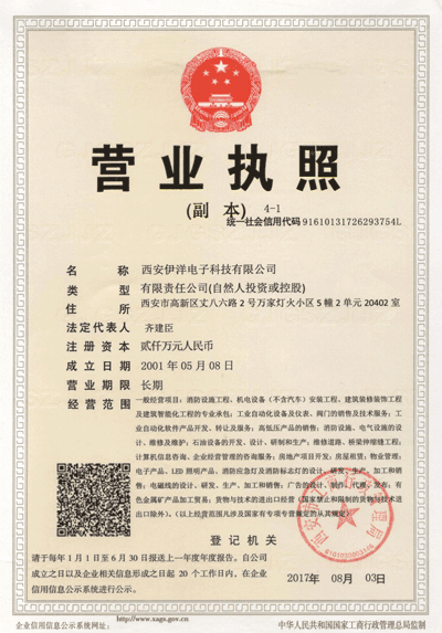 西安伊洋電子科技有限公司,成立于2001年,坐落于陜西西安,是國內(nèi)具有消防設施施工一級資質,專業(yè)從事智能建筑消防設施工程,機電設備安裝工程的專業(yè)公司;是陜西省、西安市民營科技企業(yè),中韓企業(yè)合作促進會理事單位,中國消防企業(yè)聯(lián)盟委員會會員單位,2013中國消防行業(yè)十大科技創(chuàng)新企業(yè)。西安伊洋電子科技有限公司在2014年2月注資成立...>>詳細內(nèi)容